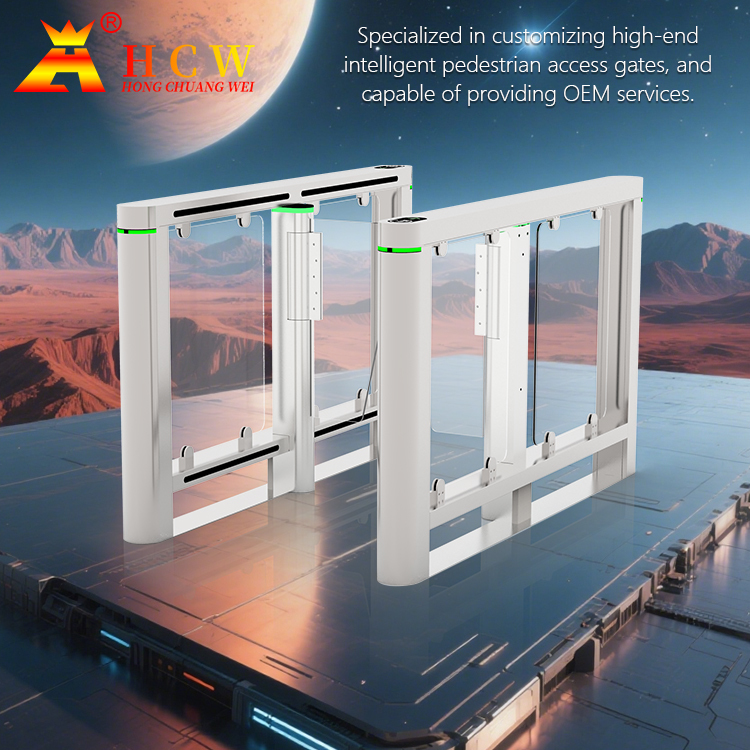 CW422 high-end speed pass anti-botsing swing gate, neemt servo-aandrijving + high-speed servomotor, 8 paar infrarood detectiesensoren, lange levensduur en hoge stabiliteit, hoge efficiëntie en anti-tailing, ondersteunt verschillende IC/ID-kaartlezers, barcodelezers en identiteitskaartlezer, etc., gemakkelijk aan te sluiten op het toegangscontrolesysteem. Veel gebruikt in de in- en uitgangscontrole van CBD-bedrijfscentra, overheids- en bedrijfsgebouwen, high-end woonwijken, kleuterscholen, enz.